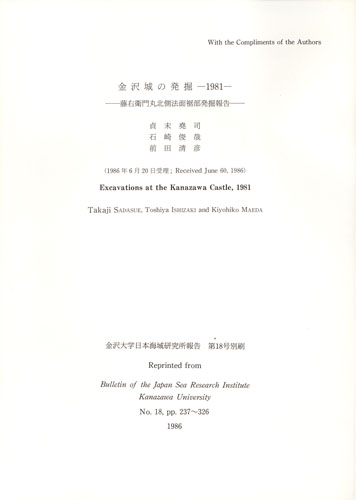 金沢城の発掘1981 藤右衛門丸北側法面裾部発掘報告 金沢大学日本海域研究所報告第18号別冊