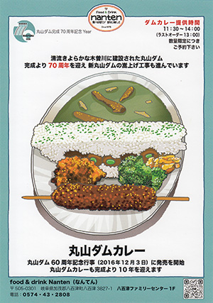 丸山ダム70周年記念カードをもらうのに合わせてNantenでダムカレーを食べに来ました。