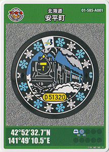 入口にマンホールの位置が貼ってあるけど、マンホールカードのデザインは一番遠く。半分くらいは見に行くことに